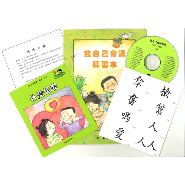 《我自己會讀》叢書是用全語文方法編寫的圖畫故事書。透過重複句式、圖畫和成人的提問,幼童邊讀、邊猜測故事的發展和結局,培養觀察力、聯想力和猜測能力等閲讀技巧;玩認字卡遊戲,可鞏固認讀生字,和仿作句子的能力;練習本中不同的練習,將字詞放在不同的語境中,有助鞏固字詞,累積語文知識;透過光碟,幼童直接多聽目標語,更能自然有效地習得該語言。只需約兩年的時間,小讀者完成了本叢書的96個故事,認讀了840多個生字,1600多個字詞,就可以提早兩年,自行閲讀附插圖的文字書,享受到能自行閲讀的成就感和樂趣。《青輯》生字共232個