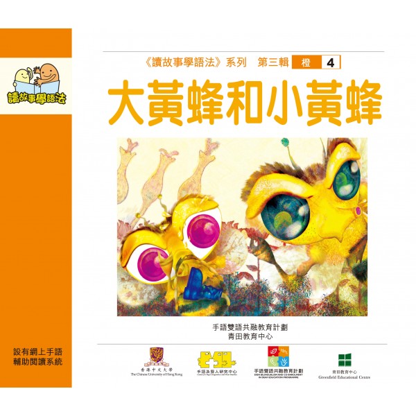 《读故事学语法》 以广东话为母语的儿童在学习语文初期,在中文语法的运用上会遇到较多困难,而阅读正是吸收知识和增润语言的最佳方法。聋童/听障学童因听觉受损未能在幼年时期获得一个完整的语言系统,因此更需透过阅读来吸取语言讯息。透过浅白的文字、句式和丰富的故事情节,让儿童在阅读的过程中,潜移默化地习得基本的中文语法概念,有助提高他们的阅读能力。设有专为家长编写的「语法小知识」和「家长导读」,备有内容理解及读后延伸问题供家长参考。为增强聋、健学童语文学习的效果,本系列设有网上的手语辅助阅读系统及工作纸,供家长免费使用。「语法小知识」粉红 1-1 物归原主在中文语法里,有多种方法用来表示某对象属于某人,其中一种方法,就是使用结构助词「的」,如:「哥哥的衬衫」、「妈妈的披肩」、「我的书包」、「小伟的玩具」等等。粉红 1-2 妈妈的好帮手在中文语法里,要表示某人拥有某物时,可在句中使用表示拥有的动词「有」,例如「我有一架大飞机。」、「小敏有很多糖果。」、「姐姐有三本图画书。」等。粉红 1-3 超市好节目「粒」、「条」和「片」是量词,常放在名词前面,用于某些具有特定形貌的对象;「粒」用于计算呈颗粒状的对象,如「一粒鱼丸」;「条」用于计算长条形的物体,如「两条香肠」;「片」用于计算薄而扁平的物体,如「三片火腿」。粉红1-4 妈妈的生日礼物「枝」和「束」都是量词,「枝」用于计算呈杆状的、细而长的东西,常用于草木的枝条,如「一枝箭」、「两枝花」;「束」用来计算捆在一起的东西,如「一束花」、「两束稻草」。粉红1-5 到公园去散步在中文语法里,「有」除了表示拥有,还可以表示事物的存在,句首通常用表示地点的短语,「有」后面为存在的事物。如「儿童游乐场有滑梯。」、「图书馆里有英文故事书。」、「树上有两只小鸟。」等。粉红1-6 一个字的魔力当我们希望别人做某件事情的时候,可以使用敬辞「请」,这样比较有礼貌,「请」字之后可以直接加上动词,例如「请坐。」、「请进。」等;也可以加上动词短语或小句,例如「请打开窗子。」、「请你给我一本书。」等。 粉红1-7 白日梦叙述事物的特征或状态时,可以使用「……是……的」的句型来表示对事物的描写或说明,例如:「树木是三角形的。」、「这个电话是新的。」、「我的书包是蓝色的。」等。粉红1-8 游戏专家在中文语法里,可以用「都」来表示总括全部,即所叙述的对象全部包括在内,一般用在动词之前,所总括的对象之后。例如「力力和阿朗都喜欢玩飞行棋。」,这句子强调「力力」和「阿朗」同样喜欢一种玩意,即「玩飞行棋」。又如「所有学生都回家了。」,强调句中所提到的学生全部回家了,没有学生留在学校。粉红1-9 糖果雨「包」、「筒」和「盒」是量词。一般来说,「包」常用于用袋来包装的东西,例如:「一包红豆」;「筒」一些中空的管状盛器,例如:「一筒薯片」;「盒」用于一些有底、盖,可以相合的盛器,例如:「一盒颜色笔」。粉红1-10 老师变成木乃伊在「我帮你贴上胶布。」这个句子中,句中的动作「帮」和「贴上胶布」的施事者都是「我」。也就是说,句子中每个动作行为都是由主语「我」发出的。例如:「小明帮妈妈做家务。」的意思是小明帮妈妈,以及小明做了家务;「姐姐帮我拿书包。」的意思是姐姐帮我,以及姐姐拿了书包。