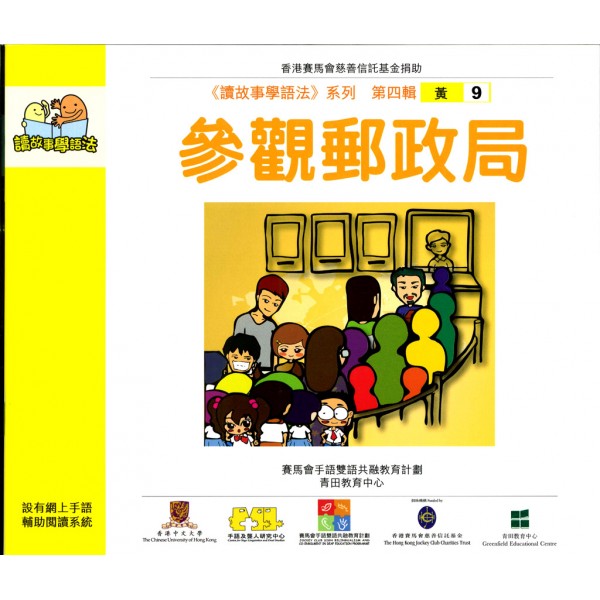 《读故事学语法》 以广东话为母语的儿童在学习语文初期,在中文语法的运用上会遇到较多困难,而阅读正是吸收知识和增润语言的最佳方法。聋童/听障学童因听觉受损未能在幼年时期获得一个完整的语言系统,因此更需透过阅读来吸取语言讯息。透过浅白的文字、句式和丰富的故事情节,让儿童在阅读的过程中,潜移默化地习得基本的中文语法概念,有助提高他们的阅读能力。设有专为家长编写的「语法小知识」和「家长导读」,备有内容理解及读后延伸问题供家长参考。为增强聋、健学童语文学习的效果,本系列设有网上的手语辅助阅读系统及工作纸,供家长免费使用。「语法小知识」粉红 1-1 物归原主在中文语法里,有多种方法用来表示某对象属于某人,其中一种方法,就是使用结构助词「的」,如:「哥哥的衬衫」、「妈妈的披肩」、「我的书包」、「小伟的玩具」等等。粉红 1-2 妈妈的好帮手在中文语法里,要表示某人拥有某物时,可在句中使用表示拥有的动词「有」,例如「我有一架大飞机。」、「小敏有很多糖果。」、「姐姐有三本图画书。」等。粉红 1-3 超市好节目「粒」、「条」和「片」是量词,常放在名词前面,用于某些具有特定形貌的对象;「粒」用于计算呈颗粒状的对象,如「一粒鱼丸」;「条」用于计算长条形的物体,如「两条香肠」;「片」用于计算薄而扁平的物体,如「三片火腿」。粉红1-4 妈妈的生日礼物「枝」和「束」都是量词,「枝」用于计算呈杆状的、细而长的东西,常用于草木的枝条,如「一枝箭」、「两枝花」;「束」用来计算捆在一起的东西,如「一束花」、「两束稻草」。粉红1-5 到公园去散步在中文语法里,「有」除了表示拥有,还可以表示事物的存在,句首通常用表示地点的短语,「有」后面为存在的事物。如「儿童游乐场有滑梯。」、「图书馆里有英文故事书。」、「树上有两只小鸟。」等。粉红1-6 一个字的魔力当我们希望别人做某件事情的时候,可以使用敬辞「请」,这样比较有礼貌,「请」字之后可以直接加上动词,例如「请坐。」、「请进。」等;也可以加上动词短语或小句,例如「请打开窗子。」、「请你给我一本书。」等。 粉红1-7 白日梦叙述事物的特征或状态时,可以使用「……是……的」的句型来表示对事物的描写或说明,例如:「树木是三角形的。」、「这个电话是新的。」、「我的书包是蓝色的。」等。粉红1-8 游戏专家在中文语法里,可以用「都」来表示总括全部,即所叙述的对象全部包括在内,一般用在动词之前,所总括的对象之后。例如「力力和阿朗都喜欢玩飞行棋。」,这句子强调「力力」和「阿朗」同样喜欢一种玩意,即「玩飞行棋」。又如「所有学生都回家了。」,强调句中所提到的学生全部回家了,没有学生留在学校。粉红1-9 糖果雨「包」、「筒」和「盒」是量词。一般来说,「包」常用于用袋来包装的东西,例如:「一包红豆」;「筒」一些中空的管状盛器,例如:「一筒薯片」;「盒」用于一些有底、盖,可以相合的盛器,例如:「一盒颜色笔」。粉红1-10 老师变成木乃伊在「我帮你贴上胶布。」这个句子中,句中的动作「帮」和「贴上胶布」的施事者都是「我」。也就是说,句子中每个动作行为都是由主语「我」发出的。例如:「小明帮妈妈做家务。」的意思是小明帮妈妈,以及小明做了家务;「姐姐帮我拿书包。」的意思是姐姐帮我,以及姐姐拿了书包。